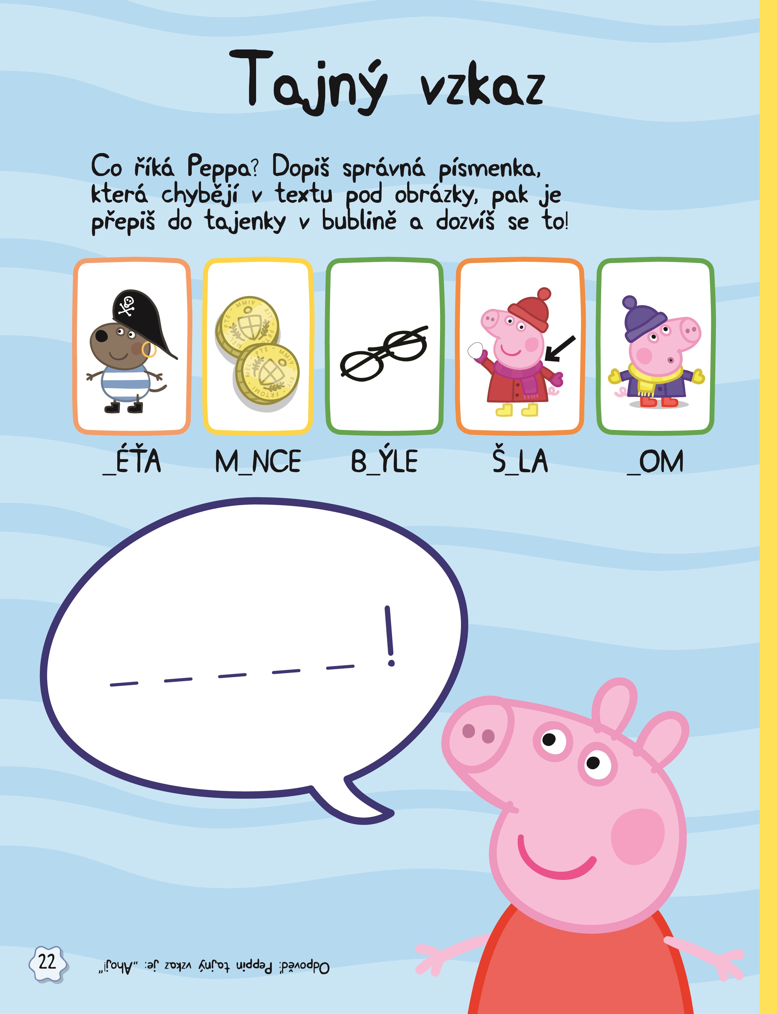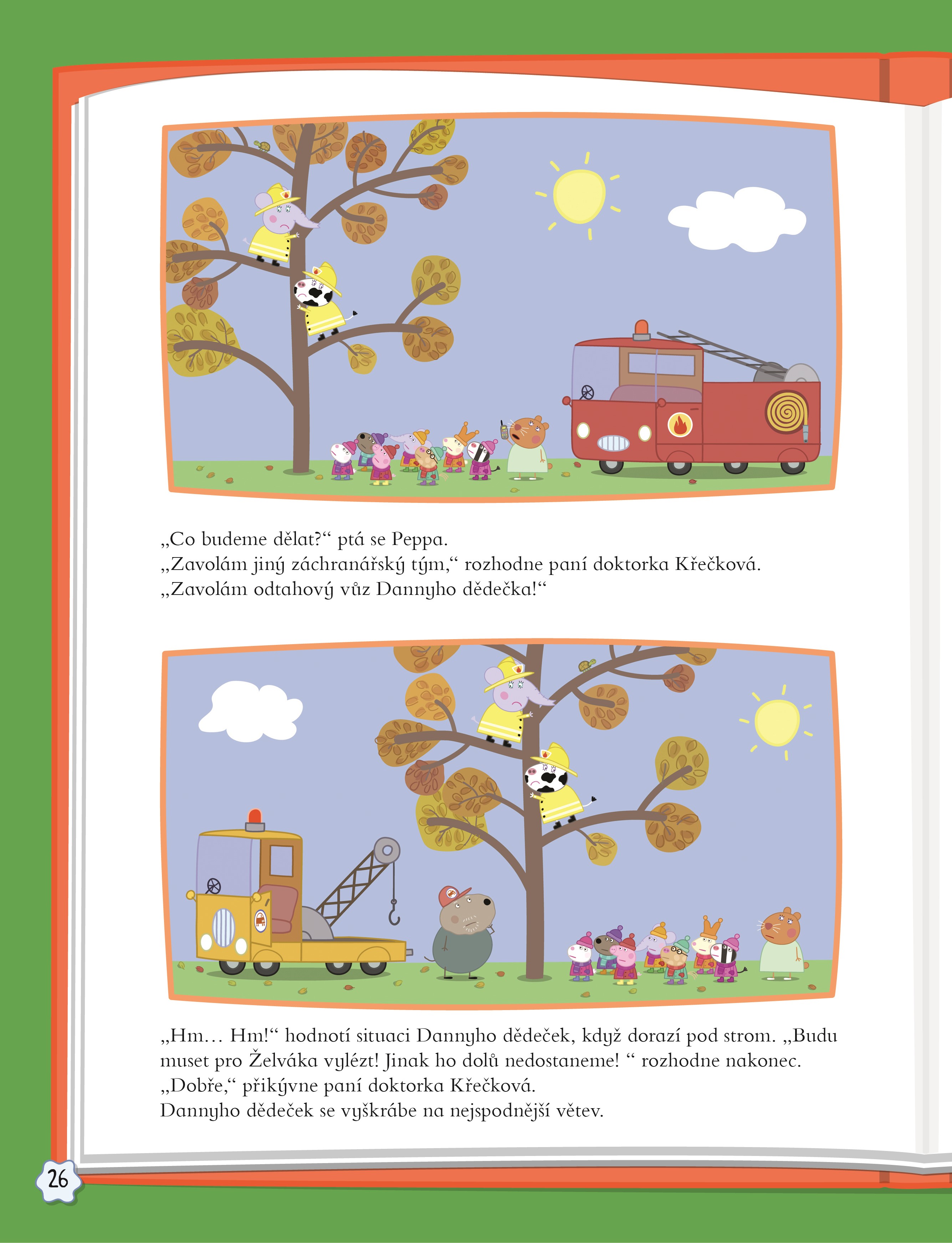 Prasátko Peppa za vámi přichází s další knihou příběhů a zábavy. Dozvíte se, jak Peppa s kamarády hledala pirátský poklad, co se stalo při záchraně nezbedné želvy a o čem byla pohádka na dobrou noc pro bratříčka Tomíka. Ale to není všechno! Můžete se také seznámit s Peppinou rodinou, vyřešit různé hádanky, naučit se pár cirkusových triků, zahrát si stolní hru a vyrobit vlastní dinosauří záložku. Přejeme vám příjemnou zábavu!