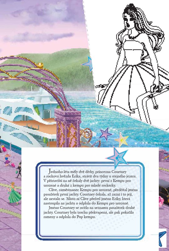 Přečti si neobyčejný příběh Barbie v roli princezny Courtney, vybarvi hrdiny z jejího nového filmu a nalep pěkné samolepky!