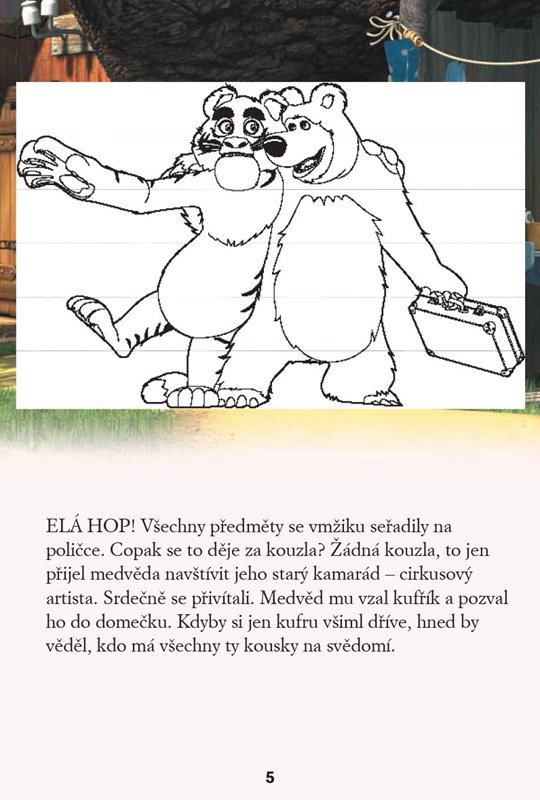 Přečti si další z příběhů o Máše a medvědovi a své oblíbené hrdiny si vybarvi. Najdeš je i jako samolepky! Záleží jen na tobě, jakou veselé příhodě dodáš barvu – potřebuješ k tomu jen tuto knížku a vlastní představivost! Hezkou zábavu!