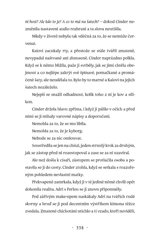 V tomto napínavém knižním debutu pro mládež, prvním ze čtyř svazků, představuje Marissa Meyer čtenářům nezapomenutelnou hrdinku a mistrně vytvořený nový svět, který je pohltí.