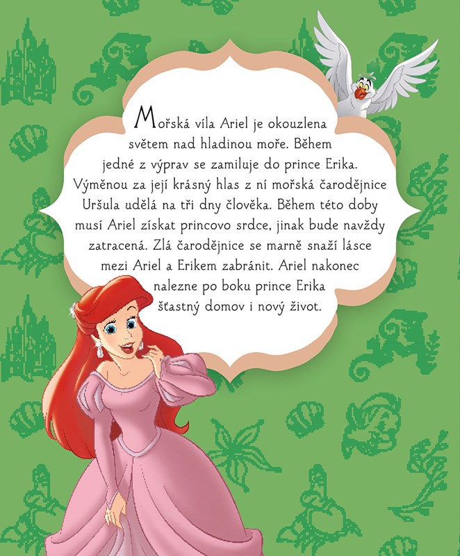 Připoj se k princeznám a užij si s nimi skvělou zábavu! Protanči noc v záři křišt’álových lustrů s Popelkou, potop se na dno nejhlubšího oceánu s Ariel, objev pravou krásu pod odpudivou maskou s Bellou, zažij divokou jízdu na koňském hřbetě s Meridou, poznej krásy světa za zdmi věže s Locikou. Otevři knihu puzzle s 50 dílky v každém obrázku a vejdi do kouzelného světa, kde se i ty můžeš stát princeznou!