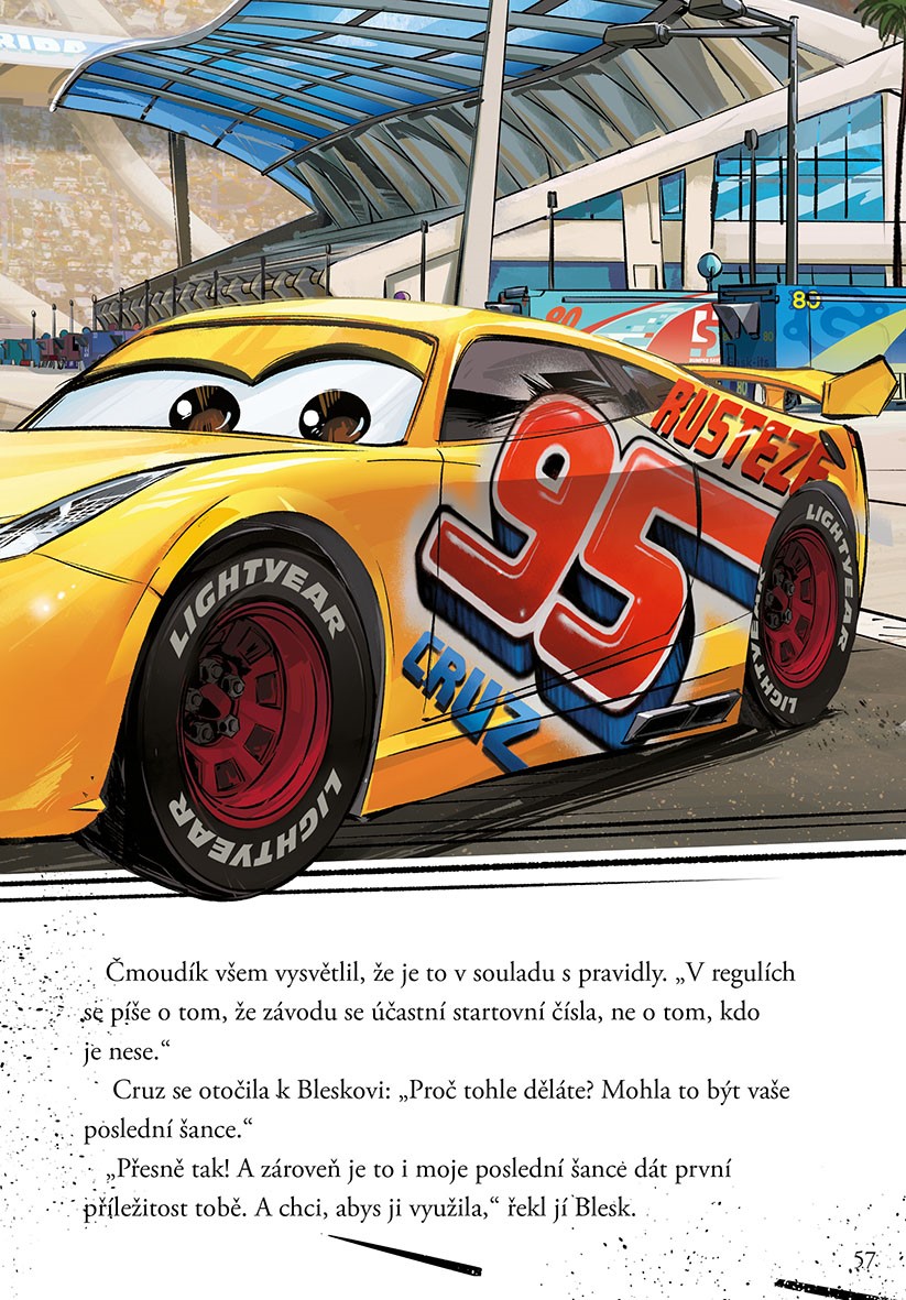 Legendární Blesk McQueen, sedminásobný vítěz série závodů o Zlatý píst, si svou vášní pro automobilový sport a férovým jednáním získal uznání po celém světě. V této knížce najdete jeho nejnovější příběh ze závodních okruhů, na kterých tentokrát musí soupeřit s novou generací dravých závoďáků toužících po vítězství.