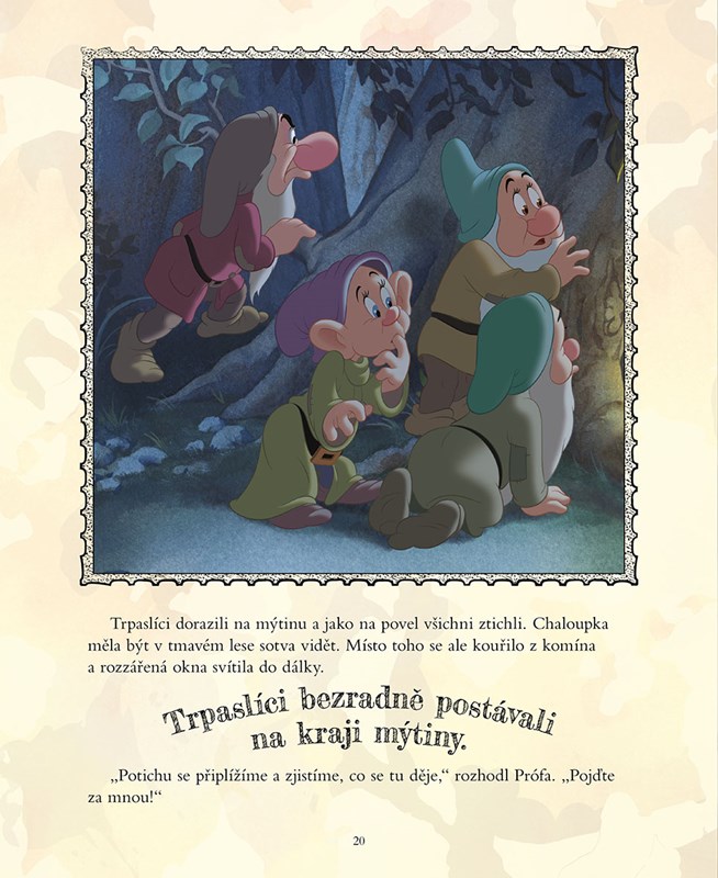 Milá a laskavá Sněhurka dokázala okouzlit každého, s kým se setkala, kromě jediné osoby – své nevlastní matky, zlé královny. Když královně kouzelné zrcadlo vyjevilo, že nejkrásnější v zemi je právě Sněhurka, vyhnala nebohou dívku z domu. Sněhurka se v lese spřátelila se zvířátky a sedmi trpaslíky – Prófou, Kejchalem, Rejpalem, Štístkem, Stydlínem, Dřímalem a Šmudlou. Přečtěte si příběh o princezně, která má rty rudé jako krev, pleť bílou jako sníh a vlasy černé jako eben. Navíc vás čekají krásné obrázky, které si můžete sami vybarvit, a spousta veselých samolepek k doplnění příběhu.