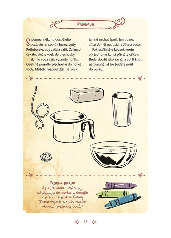 Locika vás naučí malovat, plést copy, stavět vor, lézt po stromech, chytat ryby, vyrábět krystaly, pracovat s hlínou, házet šipky, šermovat, bránit se pánvičkou, cvičit jógu, vyprávět strašidelné historky, stopovat zvířata,vázat uzly a spoustu dalších dovedností, které se hodí v přírodě i doma. V jejím Průvodci najdete spoustu návodů krok za krokem, dobrodružných aktivit i krásných barevných obrázků.