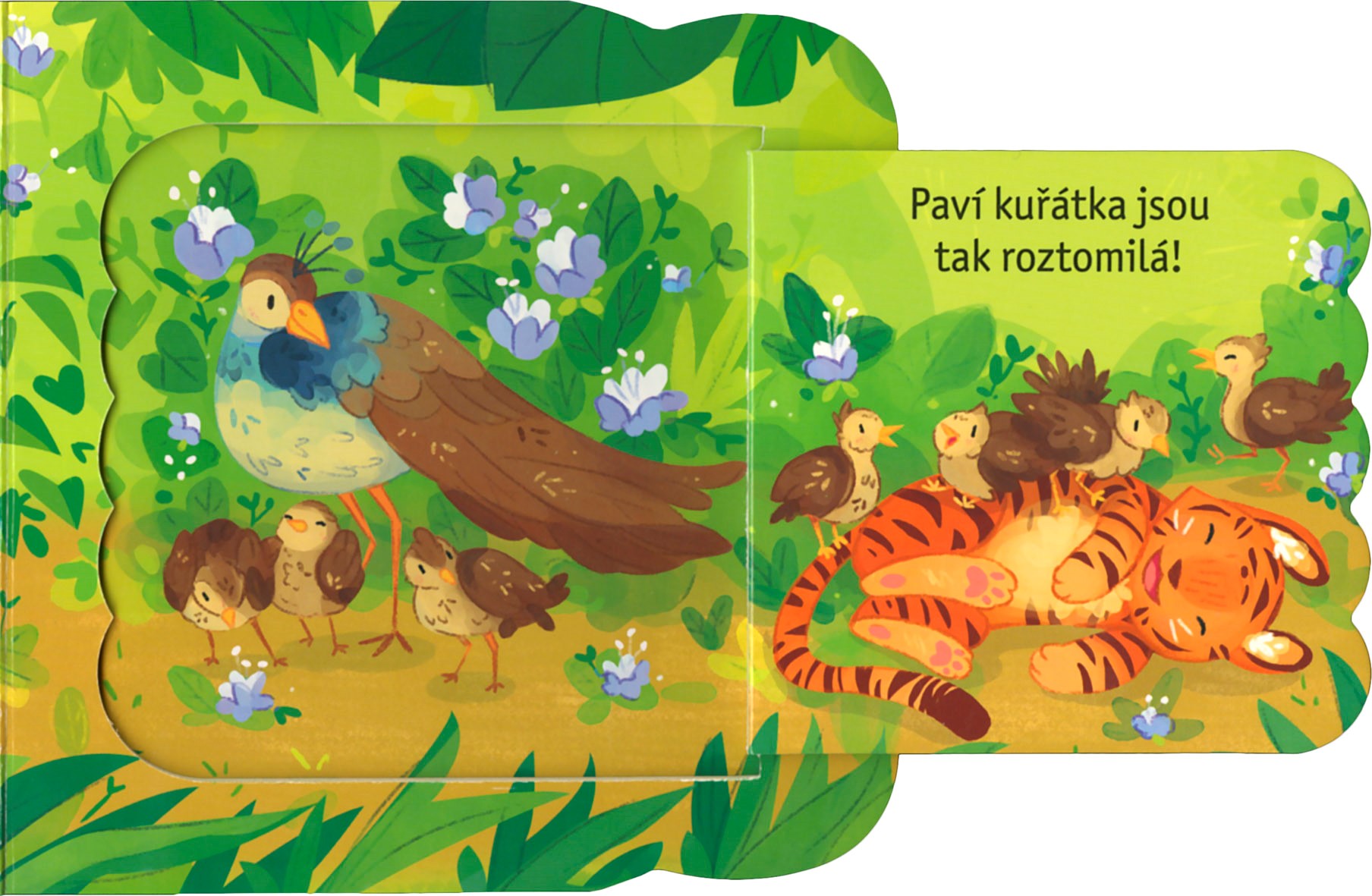 Společně s malými tygříky se podívejte, jak se žije v pestré džungli! Přečtěte si roztomilou knížku, otevírejte okénka a naučte se, jak se zvířátka z džungle jmenují.