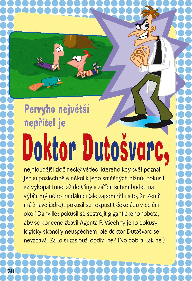 Phineas, Ferb a jejich starší sestra Candy, ptakopysk Perry (krycím jménem Agent P), zločinecký doktor Dutošvarc a ostatní z televizního seriálu Phineas a Ferb pro vás připravili tuto knížku plnou praštěných vtipů a legračních hádanek.