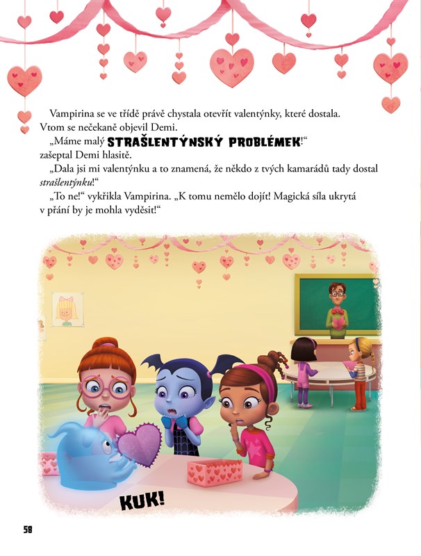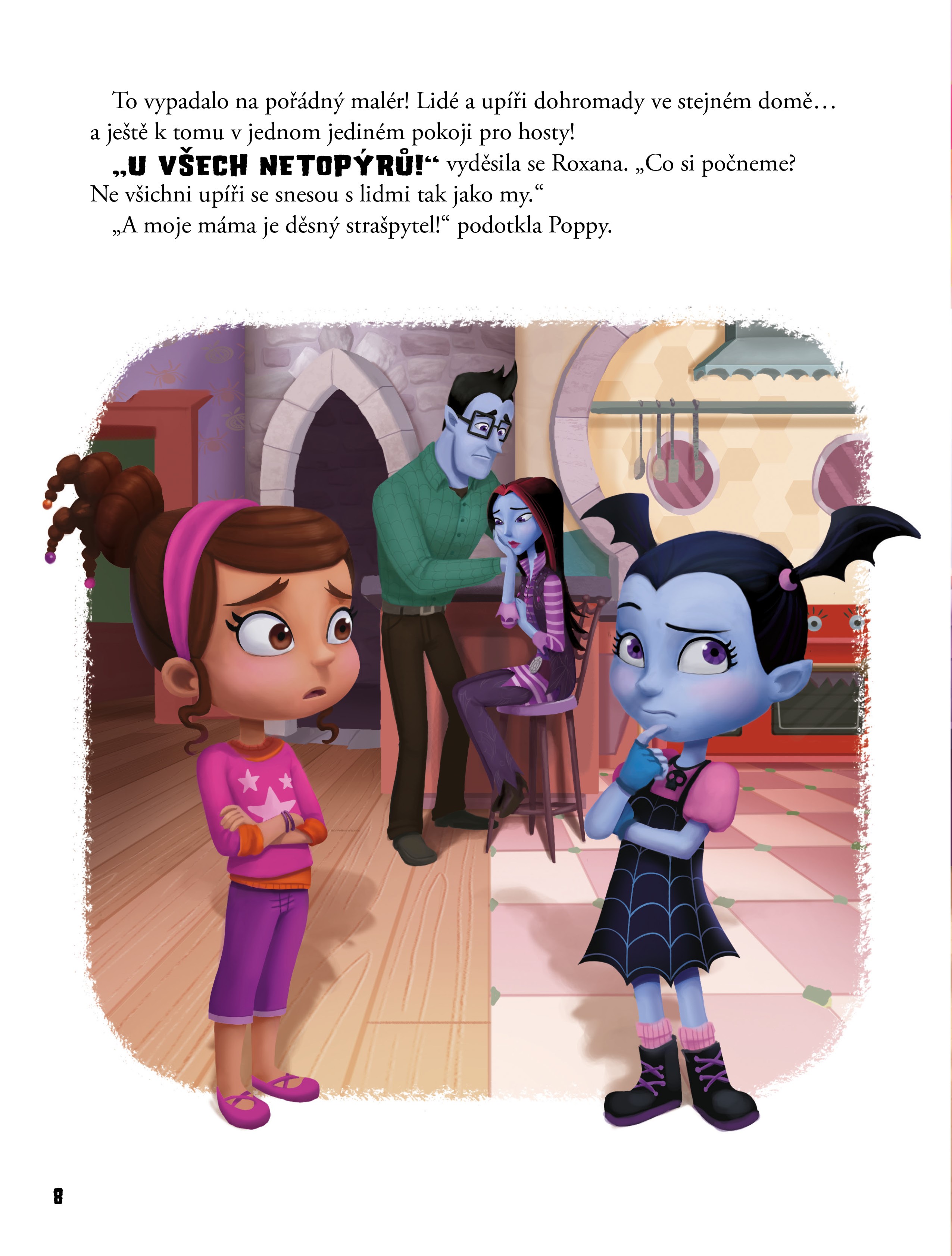 Vampirinina oblíbená barva je tajuplná černá, zbožňuje nečekaná leknutí a zvuk nehtů škrábajících po tabuli jí přijde uklidňující. Sice není jako ostatní děti v okolí, ale to vůbec nevadí, protože je naprosto neodolatelná! Se svými přáteli po boku nadšeně objevuje všechno, co lidský svět může nabídnout.