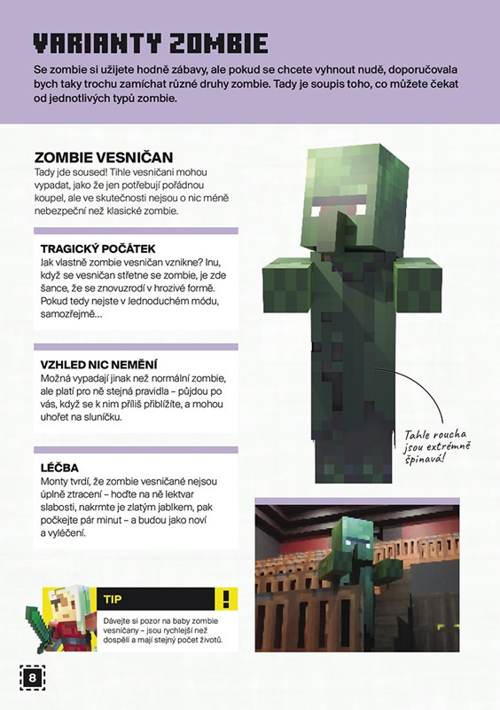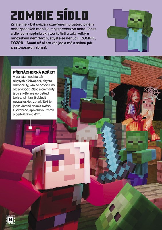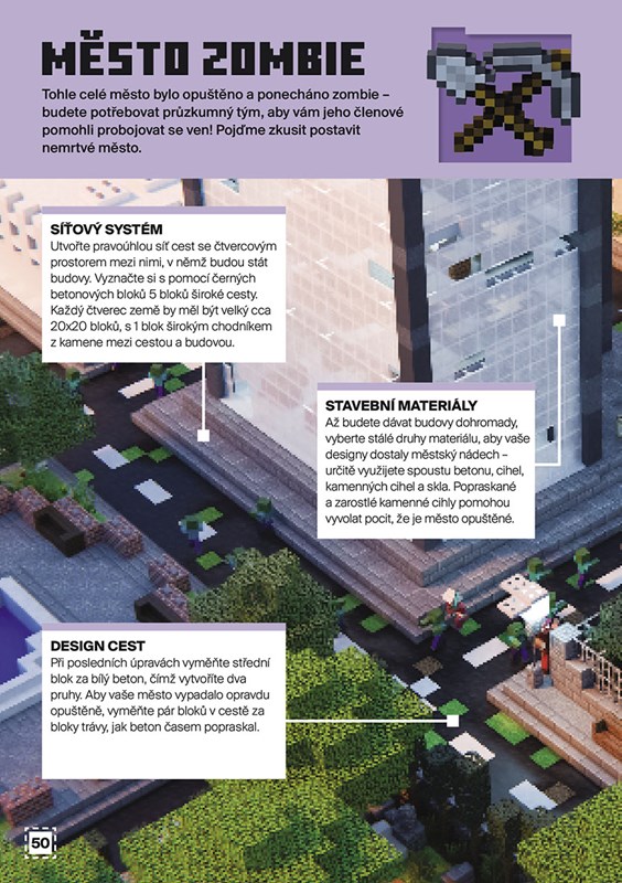 Měli jste někdy chuť Minecraft zaplnit strašnými zombie? Oficiální příručka vám ukáže, jak na to! Uvnitř najdete různé stavitelské nápady od zombie arény a hřbitova plného zombie až po město nemrtvých a přísně tajnou laboratoř, v níž se zombie léčí. Postupujte u každé stavby podle pokynů a ani se nenadějete a budete mít postavenou celou Zemi zombie. V ní si s přáteli určitě užijete spoustu zábavy!