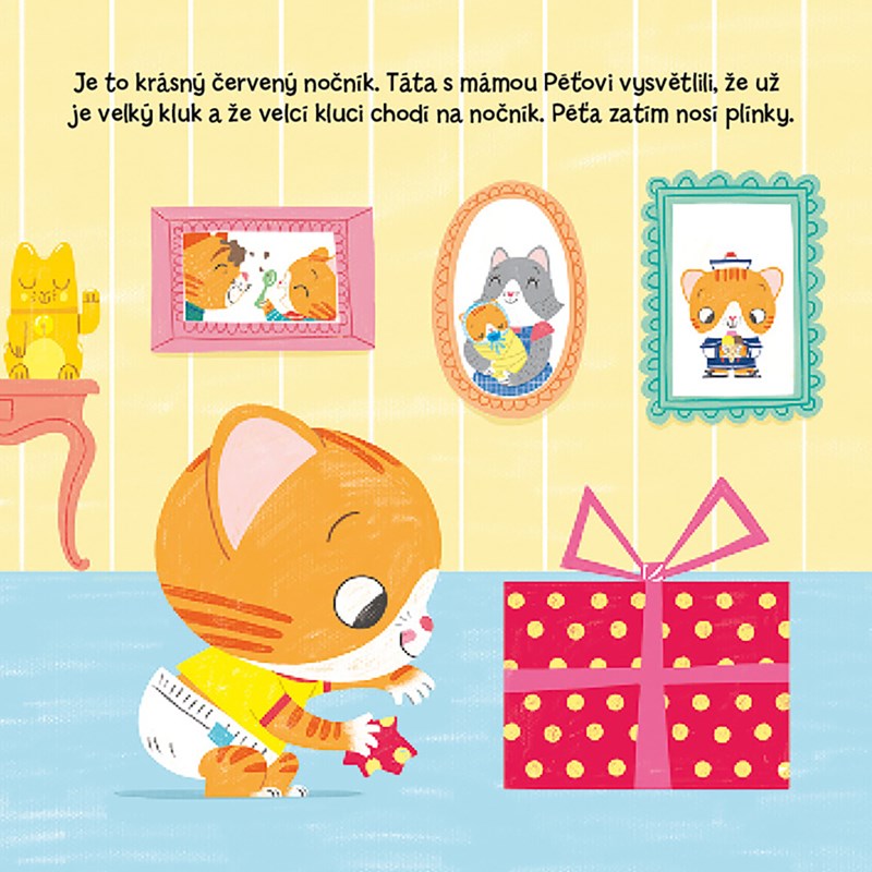 Maminka a tatínek přinesli Péťovi dárek. Je to krásný červený nočník. Péťa má za chvíli zvláštní pocit v bříšku. Stihne doběhnout na nočník?
