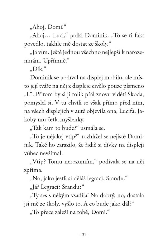Co všechno může dokázat takový mobilní telefon? O tom by mohl vyprávět hrdina našeho příběhu Dominik, kterému jedné noci zavolá tajemná dívka Lucifa. Od té doby se Dominikův svět obrátí vzhůru nohama. Lucifa mu prostřednictvím mobilu ve všem pomáhá a lúzr Dominik má najednou všechno, co dosud neměl: štěstí, peníze, popularitu, drahé věci, zkrátka na co si vzpomene. Ale pomáhá mu Lucifa nezištně, nebo za to od něj bude něco chtít?