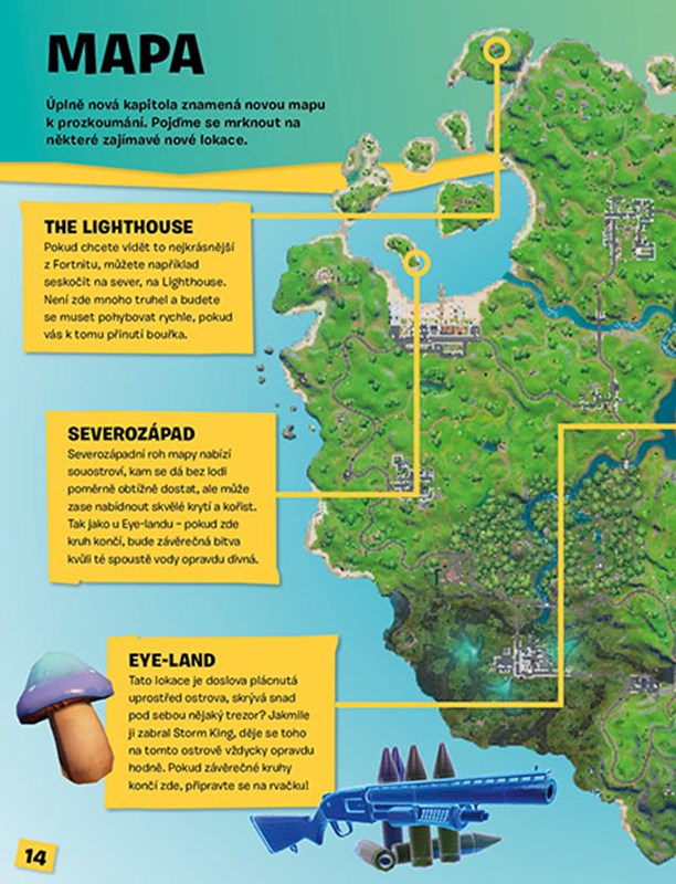 Mapa je sice jiná, ale Fortnite je stále plný zběsilých přestřelek a neméně překotného stavění a parádních emotů. K tomu se můžete těšit na atraktivní novinky, třeba rybaření a motorové čluny! Díky této knize vás v Kapitole 2 nic nepřekvapí!