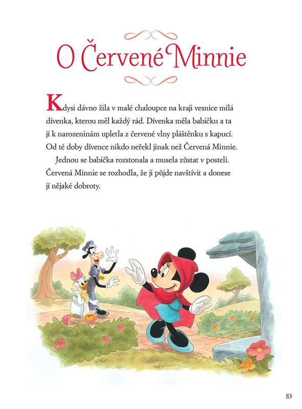 Víte, co vše se stalo za devatero horami a devatero řekami? Třeba to, že chasník Mickey našel v lese chaloupku z perníku, princ Donald jel za svou princeznou přes celý svět, Červená Minnie nesla babičce košíček s dobrotami, a ještě mnohem víc! V úžasně ilustrovaných příbězích na vás čekají postavičky od Disneyho v nové roli – jako hrdinové klasických pohádek. A každá z nich je právě tak dlouhá, že ji s dětmi za pět minut přečtete až do šťastného konce.