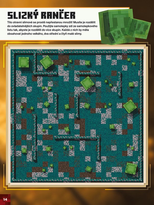 Stateční hrdinové, kteří se odváží do dobrodružného světa Minecraftu, musí čelit Arci-illagerovi a temným silám, které dal dohromady. V mnoha kvízech, hádankách a dalších zajímavých úkolech najdou milovníci Minecraftu místo pro stovky parádních samolepek. Díky nim se jim snad podaří porazit creepera, pavouka, kostlivce, endermana a další děsivé moby. Také zvládnou uniknout z ruditových dolů, neztratí se v kamenném bludišti a poznají skryté dungeony. A hlavně zjistí, jestli Arci-illager opravdu představuje to největší nebezpečí.