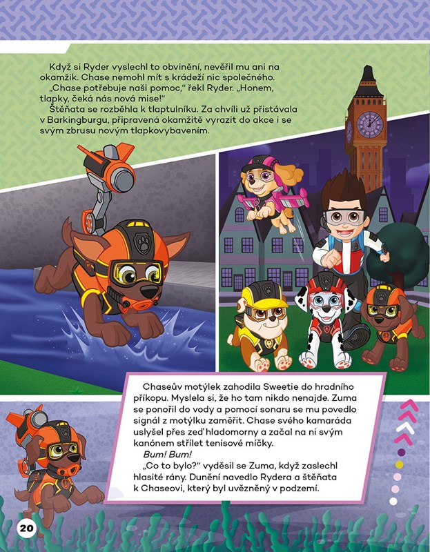 Užij si spoustu zábavy s neohroženými štěňaty z Tlapkové patroly a vydej se s oblíbenými hrdiny z Adventure Bay za dalším senzačním dobrodružstvím! S knížkou plnou doplňovaček, her a bezva čtení se nebudeš nudit ani chviličku.