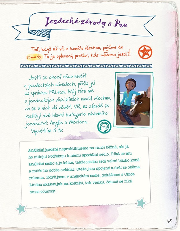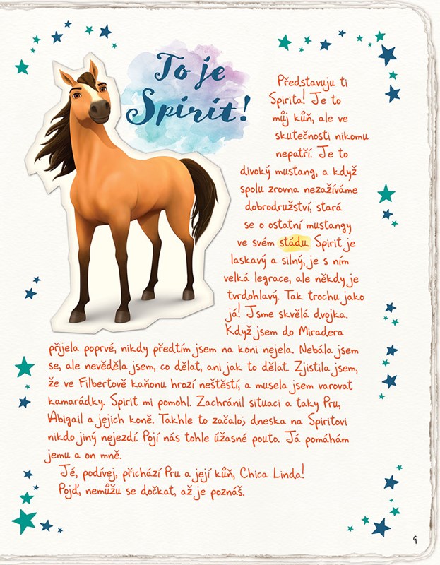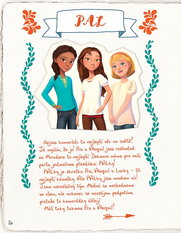 Já jsem Lucky Prescottová a chci ti povědět všechno o tom, co nejvíc miluju: o městečku Miradero, o všech možných koních - hlavně o Spiritovi - a o projížďkách v horách se svými nejlepšími kamarádkami! S pomocí svých PALek, Pru a Abigail, a několika dalších lidí z městečka jsem pro tebe připravila stránky plné čtení o koních, zábavných kvízů, lahodných receptů a bezva her!