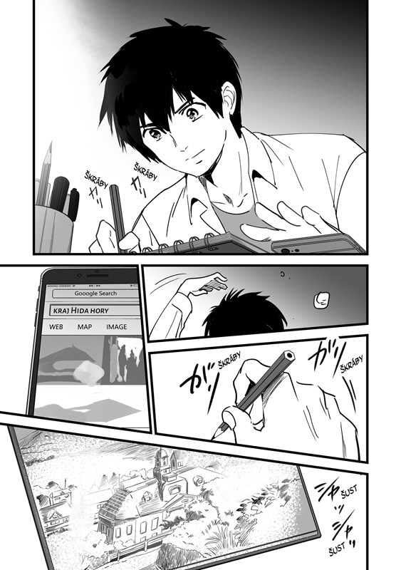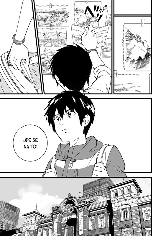 Už několik měsíců si Taki vyměňoval tělo s Micuhou, ale to nečekaně skončilo. Přesto není schopen zbavit se přetrvávajících vzpomínek na městečko, v němž nikdy nebyl, a na dívku, s níž se nikdy nesetkal - a proto se vydává najít podhorskou oblast, kde Micuha žije. Jako jediné vodítko mu k tomu slouží pouhých několik skic krajiny, které zpaměti načrtl.