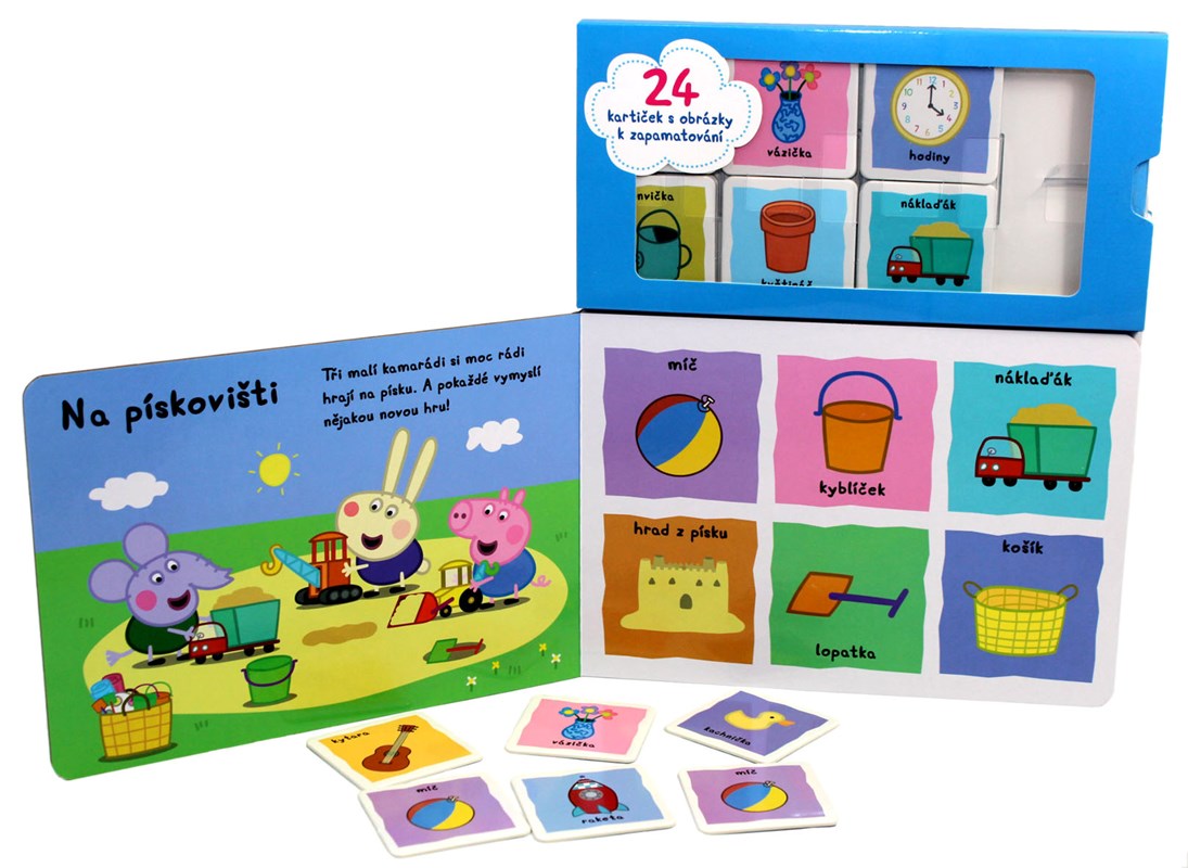 Máte rádi pexeso? Peppa pro vás jedno má! Přečtěte si knížku, hrajte si a procvičujte paměť s 24 kartičkami. Najděte dva stejné obrázky, díky kterým se naučíte jména předmětů jednoduše a zábavně!