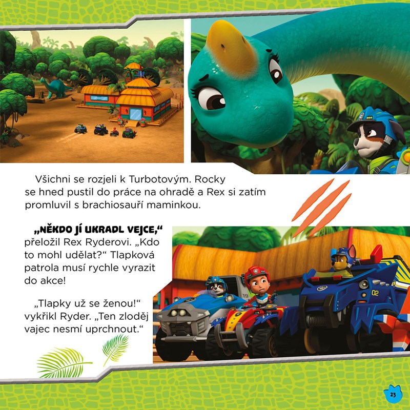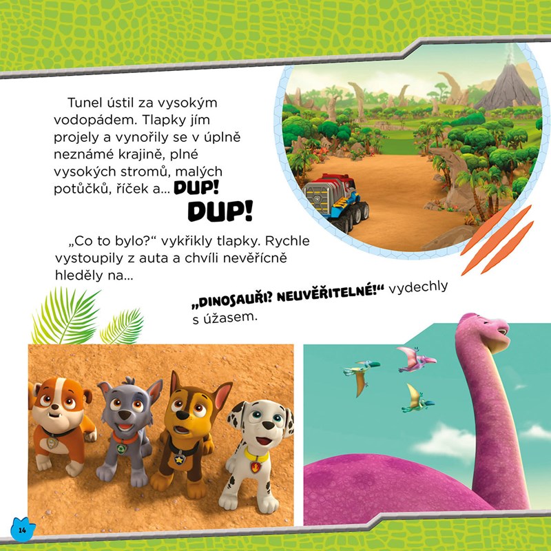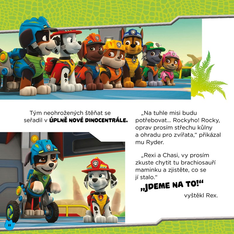 Pomozte oblíbeným animovaným hrdinům zachránit ztracená dinosauří mláďata, seznamte se se zbrusu novým členem týmu Rexem a zjistěte, jak si neohrožená štěňata poradila s nebezpečným tyranosaurem. Pusťte se do čtení a užijte si spoustu zábavy s napínavými příběhy!