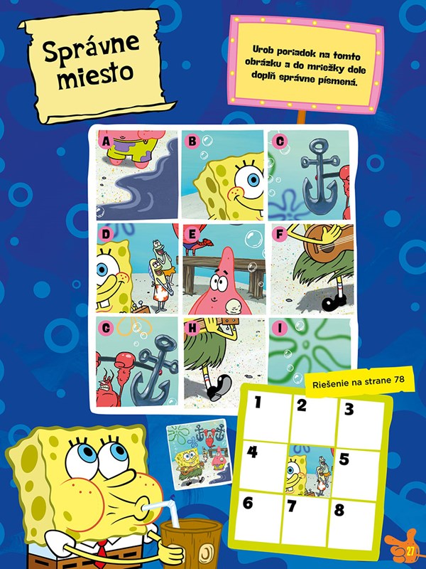 Ponor sa do pestrého podmorského sveta a navštív SpongeBoba, Patrika a ich kamarátov. Čaká ťa kopec skvelej zábavy! Vyskúšaj si svoje schopnosti pri riešení hravých hádaniek, bludísk a kvízov. Nájdeš tu aj hry, ktoré si môžeš zahrať so svojimi kamarátmi, alebo úžasné motívy na vyfarbovanie.