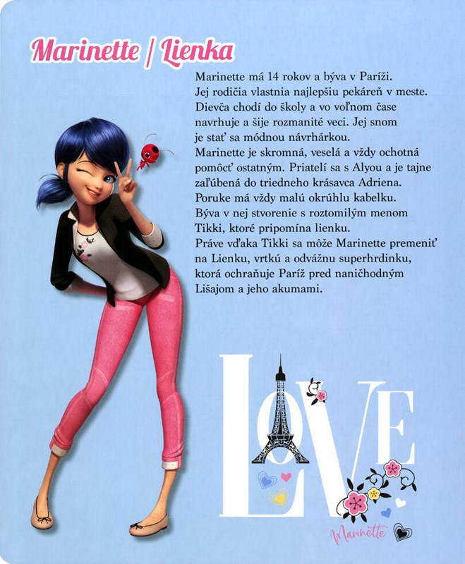 Máte radi Marinette alias Čarovnú Lienku? Páčia sa vám jej príbehy? Potom je táto knižka presne pre vás. Zoznámite sa s hlavnými postavami a užijete si veľa zábavy pri skladaní obrázkov, pričom každý jeden má 50 dielikov! Tak do toho! Hrajte sa, čítajte a skladajte puzzle!