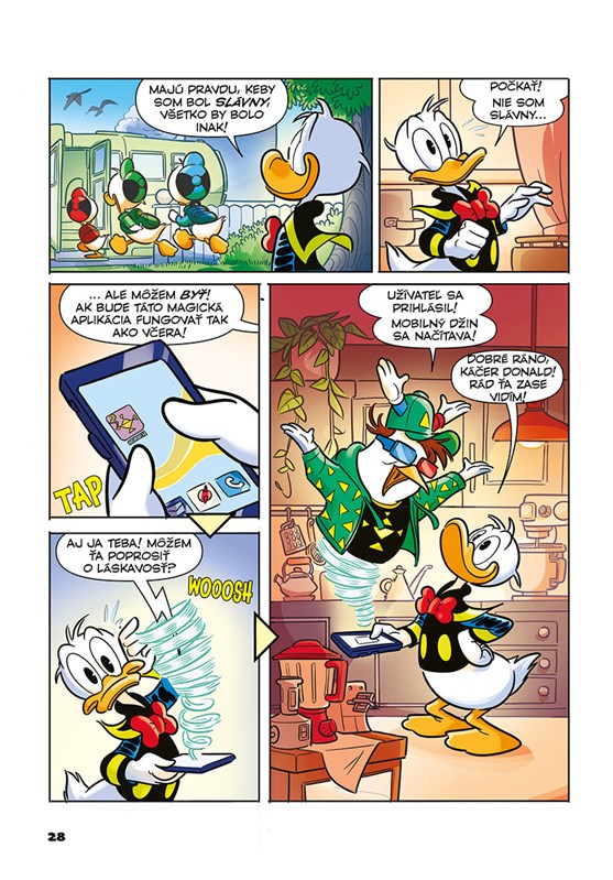 Káčer Donald sa rúti so svojou obrovskou energiou a nadšením! Pri príležitosti 90. výročia od chvíle, kedy sa prvýkrát objavil v animovanom filme, vznikol celkom nový rad komiksových príbehov, ktoré pobavia a prekvapia všetkých jeho fanúšikov. Veď to predsa poznáte – tam, kde je Donald a jeho synovci, nezostane kameň na kameni. Dobrá nálada je zaručená!