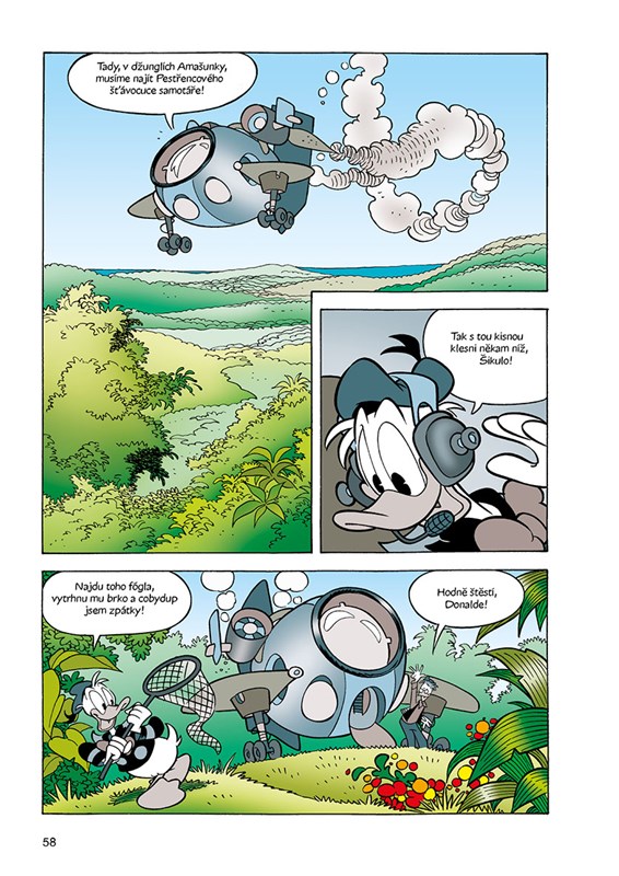 Donald má zase jednou smolný den a radši zmizí do zapadlého horského kláštera, kde mu láma splní jeho přání… jenže pak v Kačerově narazí na Bratra Kačera, své šťastnější a diktátorské já! Podaří se mu změny otočit? Pak se vrhne do dobrodružství se Šikulovým bezbarvým vynálezem, s Mickeym se vypraví do Asie zachránit krásnou neznámou a neunikne mu ani olympiáda v Číně, kam to vezme oklikou přes Mongolsko.
