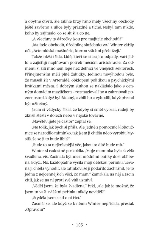 Krásná a všemi milovaná princezna Winter je trnem v oku své mocné maceše královně Levaně. Jenže není tak slabá, jak si Levana myslí. Společně s kyborgskou mechaničkou Cinder a jejími spojenci by se jí mohlo podařit rozdmýchat povstání a ukončit dlouhou válku. Dokážou Cinder, Scarlet, Cress a Winter porazit Levanu a dopsat šťastné konce ke svým příběhům?