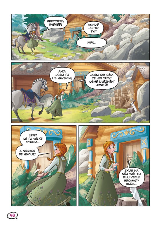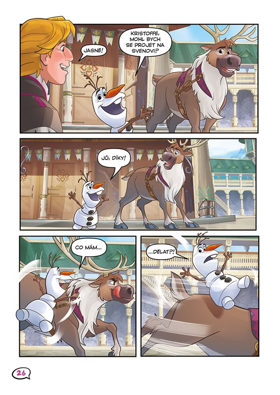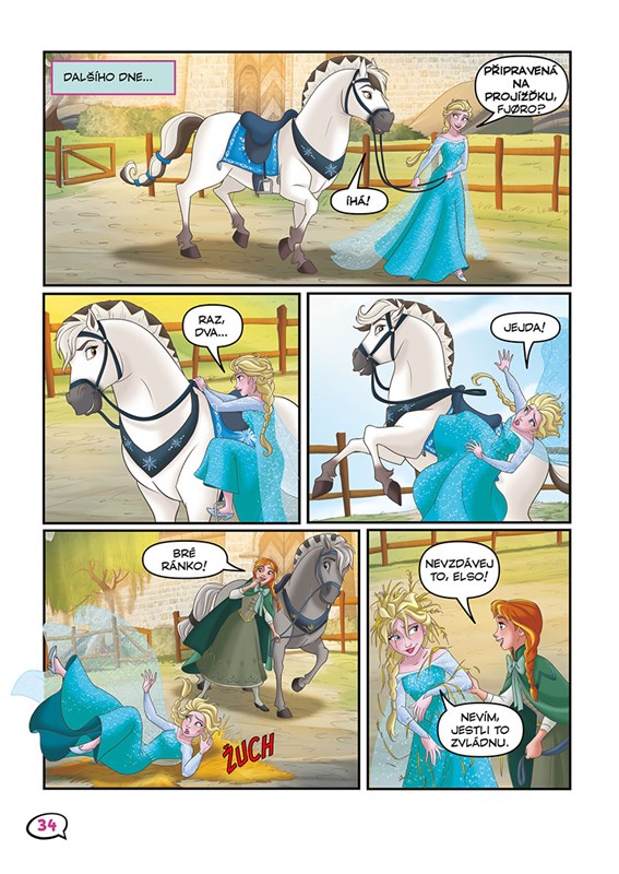 Anna s Elsou nade všechno milují koně a projížďky s nimi! Proto jsme pro vás připravili novou knížku komiksových příběhů, kde se dozvíte, jak arendellské princezny své koně získaly a jaké příhody s nimi zažily. Často to byly zážitky zábavné, někdy napínavé, ale vždy s dobrým koncem! Vzhůru do sedel, dobrodružství začíná!