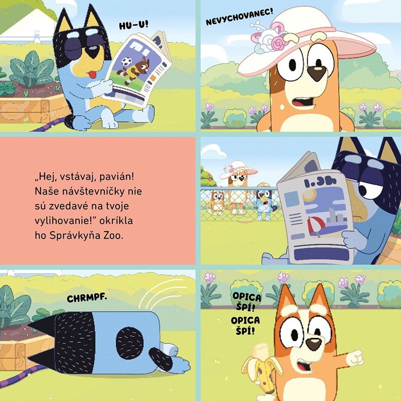 Bluey sa s rodinou hrá na ZOO. Čo všetko zažijú, keď utečie veľká modrá opica? Prečítajte si o rozkošnej fenke Bluey a zaspávajte pri jej veselých dobrodružstvách.
