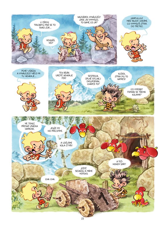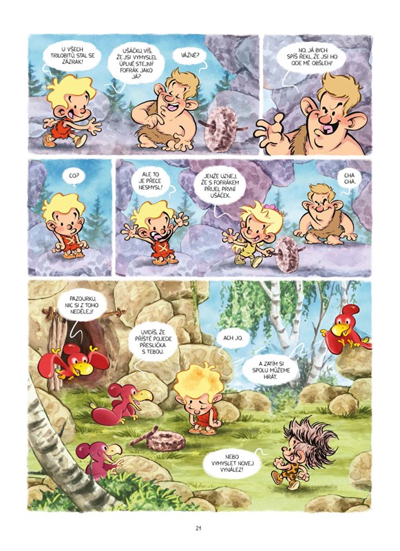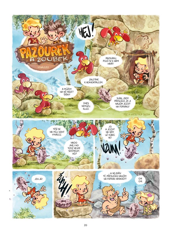 U všech trilobitů! Majznout kyjem mamuta po šišce, nebo se prolétnout na pterodaktylovi do praškoly? Pro Pazourka a Zoubka žádný problém, tihle dva pravěcí rošťáci zažívají každý den nová a nová dobrodružství. Přečtěte si, jak se seznámili s ohněm, co se (ne)naučili v pravěké škole, jak Pazourek vynalézal a spoustu dalších eňo ňuňo příběhů! Pravěk ještě nikdy nebyl zábavnější a komiks vtipnější.