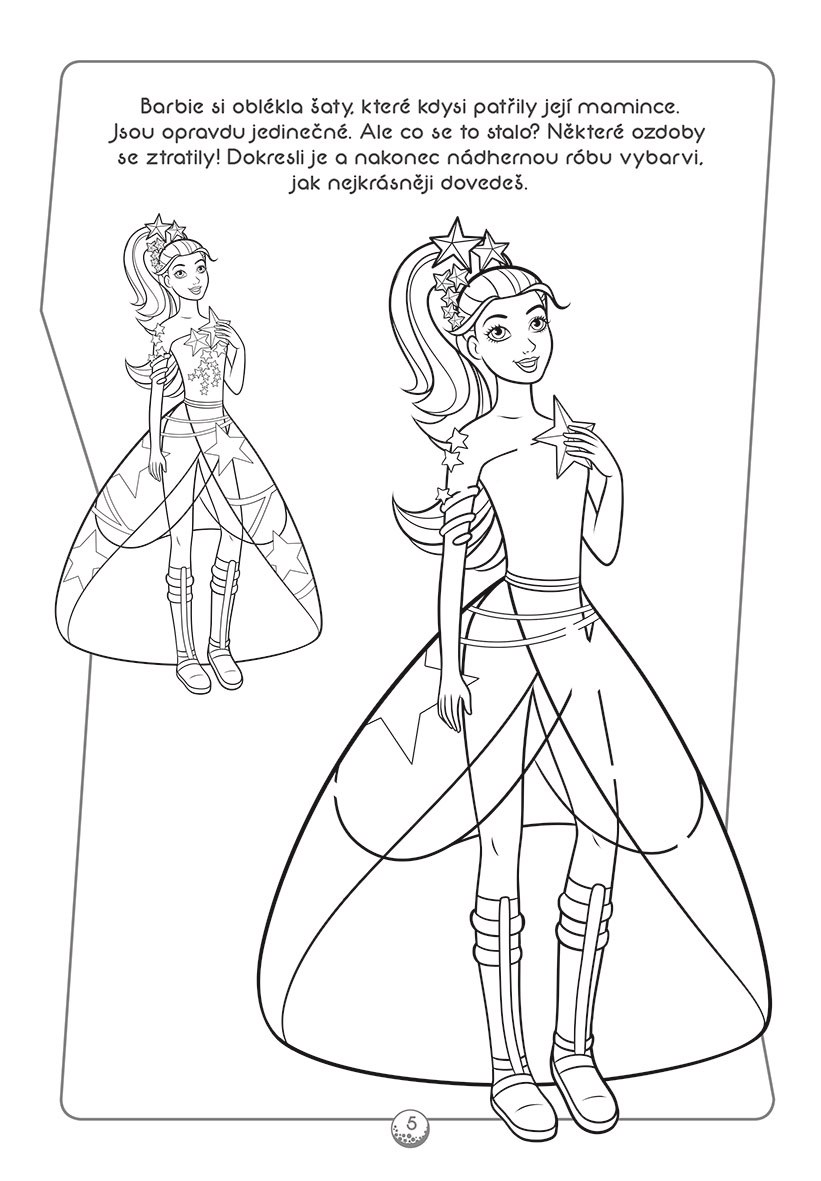 Vstup s Barbie do světa vesmírného dobrodružství a pomoz jí zachránit galaxii! Vybarvuj obrázky, lušti hádanky a nalepuj samolepky!