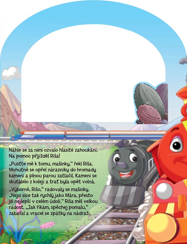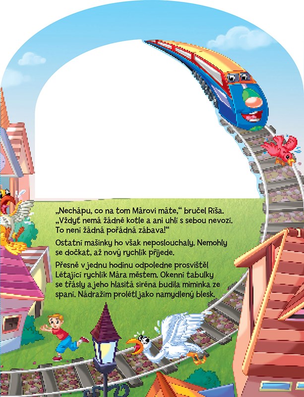 Ríša byl pyšný na to, že je na nádraží nejsilnější. Jezdil sice pomalu, ale pokaždé spolehlivě dojel do cíle. Jednoho dne však přijel do města Létající rychlík Mára, nejrychlejší vlak z celého okolí! Veselý příběh, který společně s výtvarným provedením knížka Podporuje dětskou představivost!