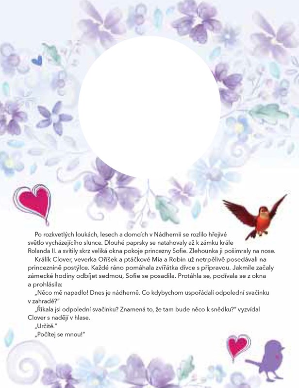 Princezna Sofie se rozhodla, že uspořádá odpolední svačinku pro své zvířecí kamarády. Králík Clover už se nemůže dočkat. Tolik se těší, že neposedí chvilku v klidu. Jenže na princeznu Sofii čeká ten den spousta povinností. Podaří se jí přidat na seznam úkolů také zábavu? A co čeká Clovera? Zklamání, nebo radost z báječné hostiny? Přečti si veselý příběh a přitom se nauč hodiny!
