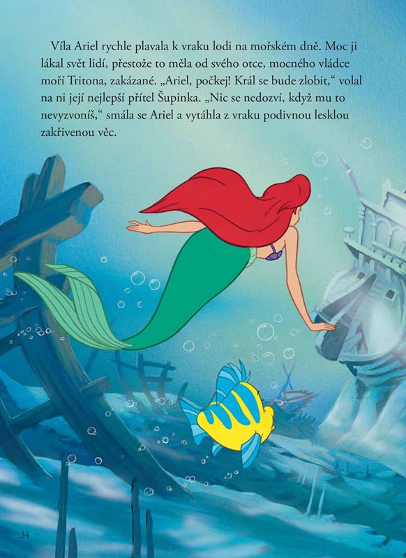 V této knize najdete dvě z nich. První pohádka vypráví o Sněhurce a sedmi trpaslících. Druhá pohádka je o malé mořské víle Ariel, princi Erikovi a zlé podmořské čarodějnici Uršule.
