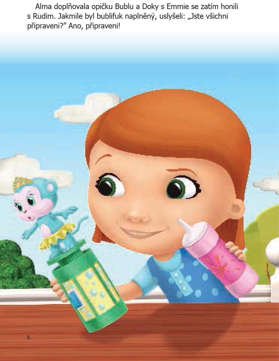 Doky s kamarádkami Emmie a Almou milují pouštění bublin. Pomáhá jim v tom opička Bubla.