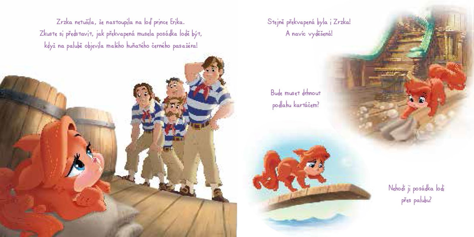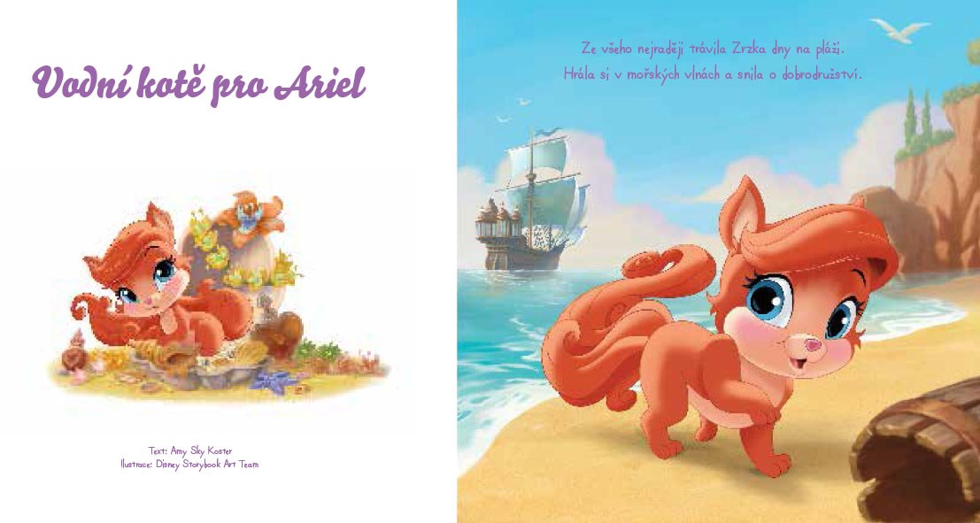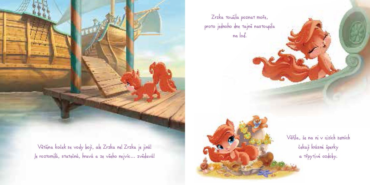 Brzy se ukázalo, že kočička zbožňuje, když jí mořský vánek čechrá srst i hledání vzácných pokladů. Přečti si, jak se z lodní paluby dostala do náruče princezny Ariel. V dalším příběhu se k ní přidají i pes Max a krab Sebastián.
