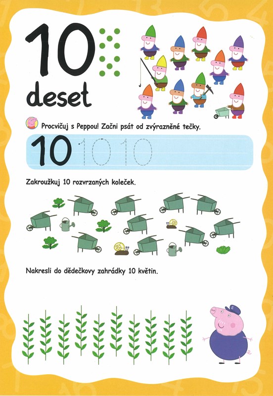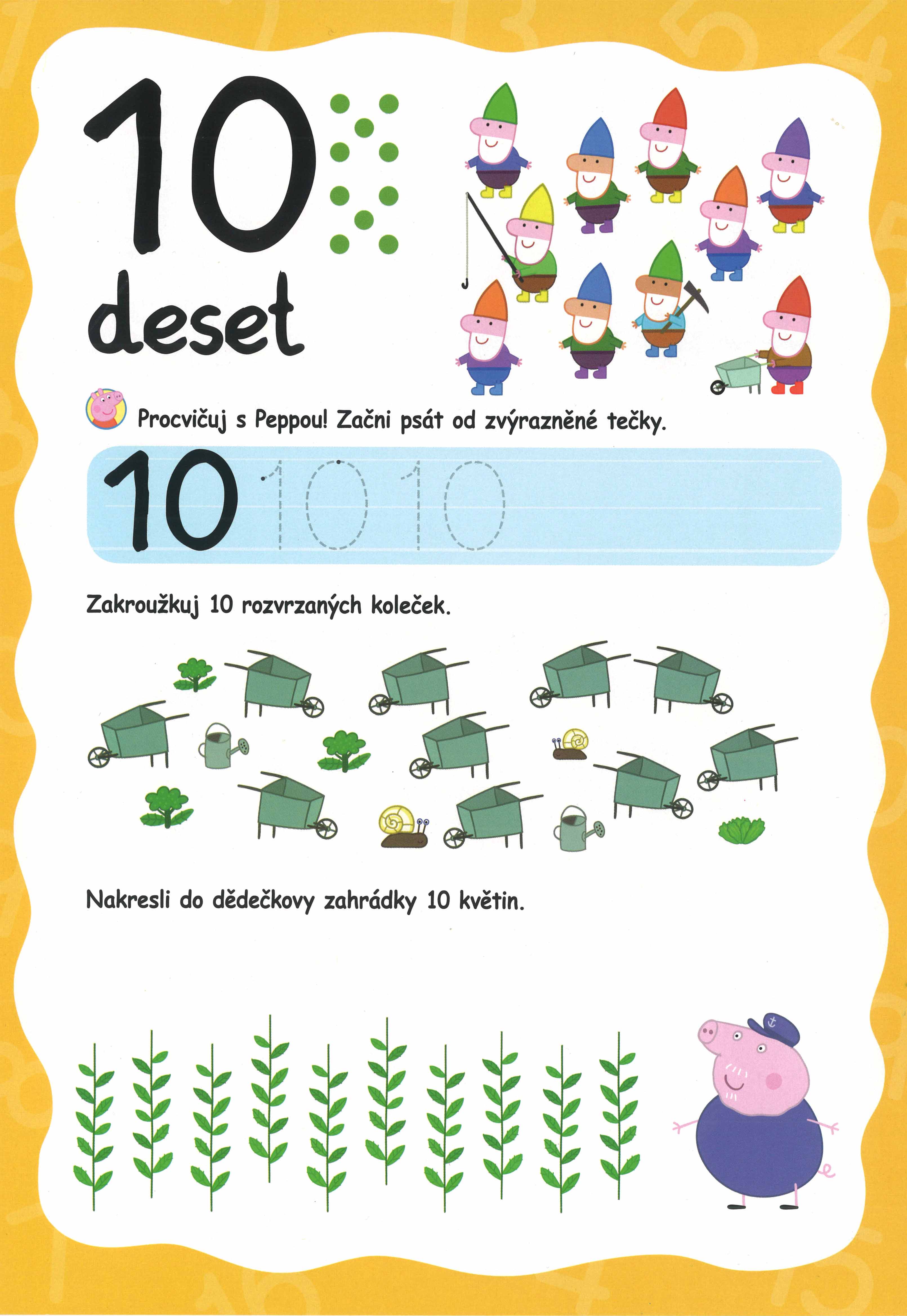 Peppa se učí počítat a psát číslice. Přidej se k ní! Obtahuj číslice speciálním perem, stírej je a zkoušej to stále znovu! Tahle skvělá stíratelná kniha pomůže dětem naučit se psát správně číslice a počítat s jistotou do deseti, podíváme se i na čísla do dvaceti.