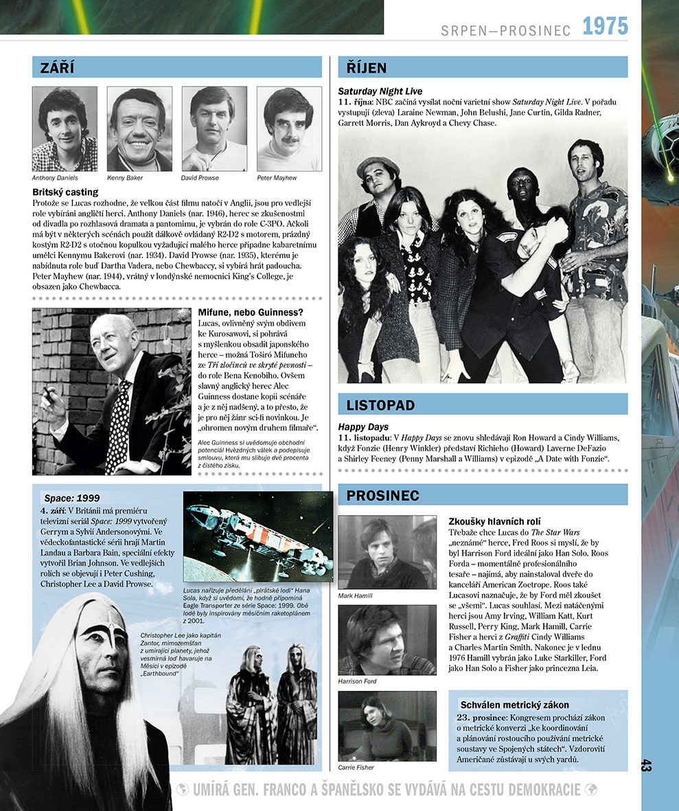 Kniha Star Wars Rok za rokem, vytvořená ve spolupráci s Lucasfilmem a napsaná renomovanými odborníky na Star Wars, nabízí podrobnou časovou osu všeho možného, co souvisí se Star Wars: od prvotní inspirace George Lucase po jeho odchod z Lucasfilmu, od raných konceptuálních kreseb Star Wars Povstalců po dokončené záběry, od starých knižních přepisů po nové zábavní parky. Velká péče byla věnována i českému vydání, na jehož přípravě se podíleli respektovaní znalci prostředí Star Wars u nás.