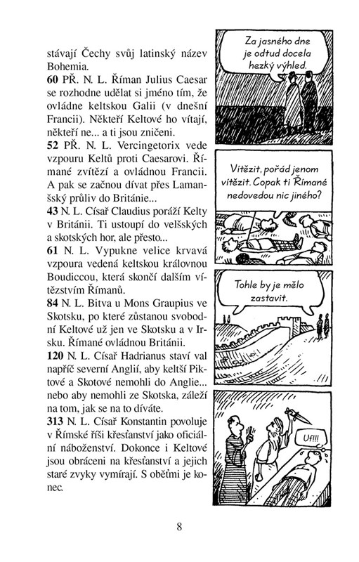 Dozvíte se například, proč keltští válečníci bojovali úplně nazí, jak uchovávali mozky svých nepřátel nebo proč se Keltové při pohřbech smáli. Přečtete si také zajímavé příběhy o svatých mučednících, příšerném keltském dětství a tajemných druidech, kteří prováděli temné rituály s lidskými oběťmi.
