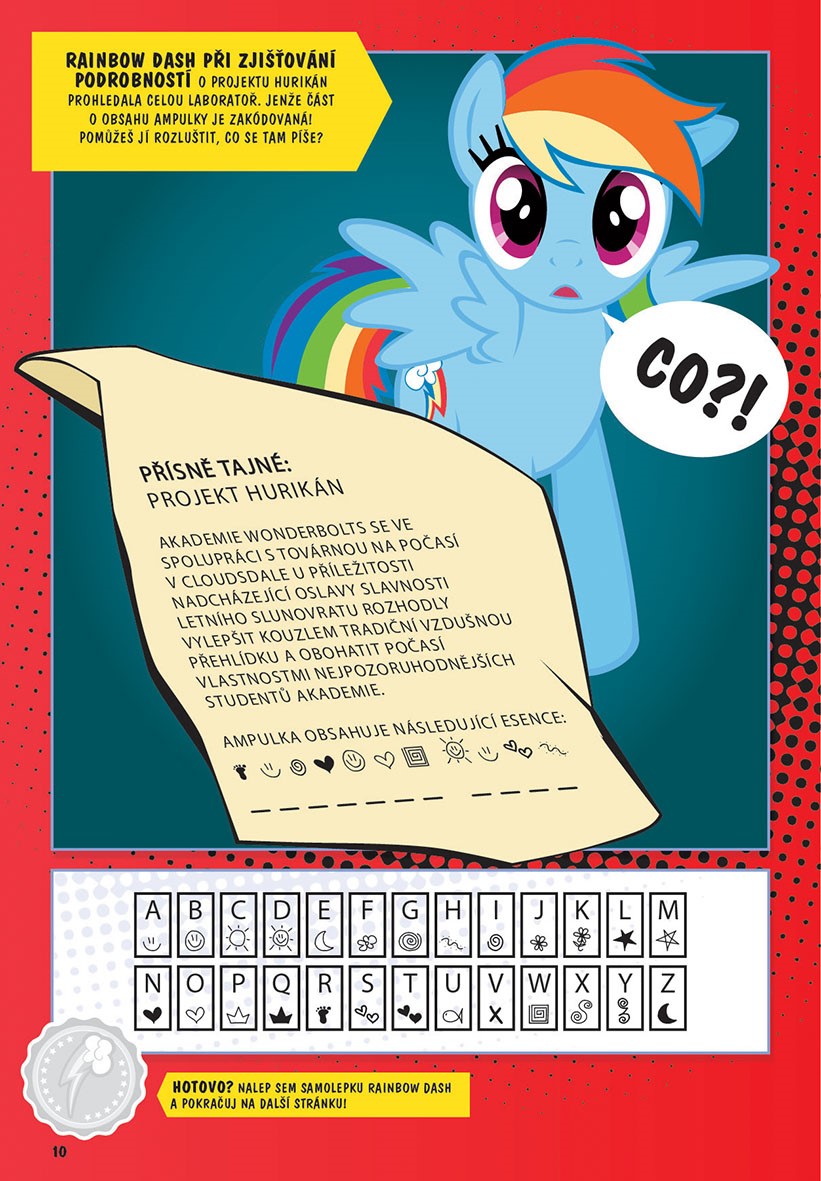 Rainbow Dash, jedna z nejnadějnějších kadetek týmu elitních letců Wonderbolts, se střetává s podivným hurikánem, ze kterého se vyklube… ona sama! Strhující vyprávění, spousta aktivit k příběhu a originální figurka Rainbow Dash zaručuje spoustu zábavy, která na tebe čeká v akademii Wonderbolts!