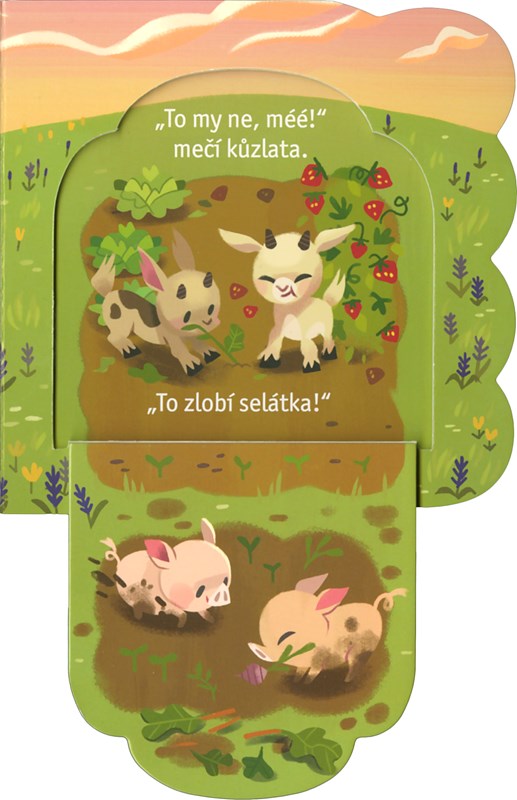 Společně s malými kůzlátky se podívejte, jak se žije na farmě! Přečtěte si roztomilou knížku, otevírejte okénka a naučte se pojmenovat domácí zvířátka.