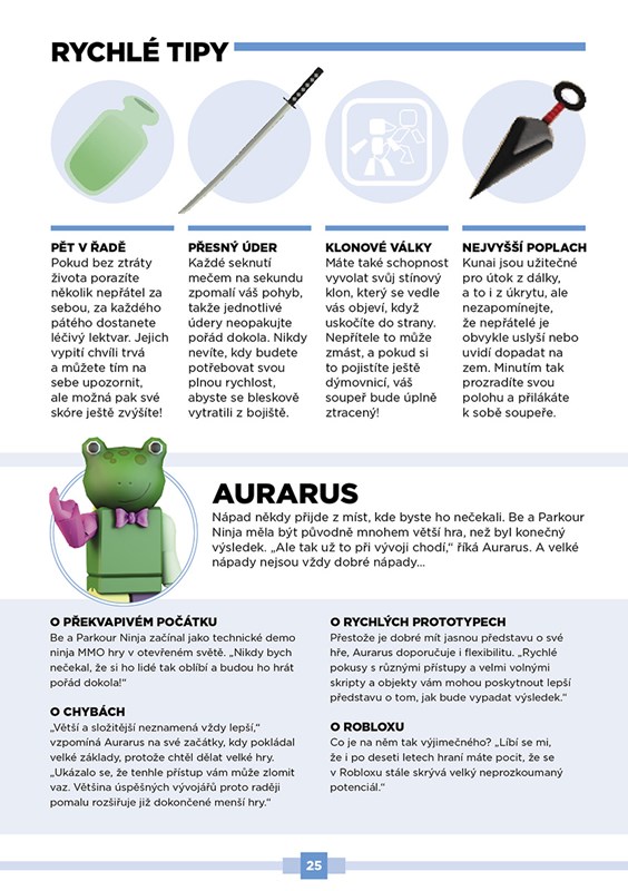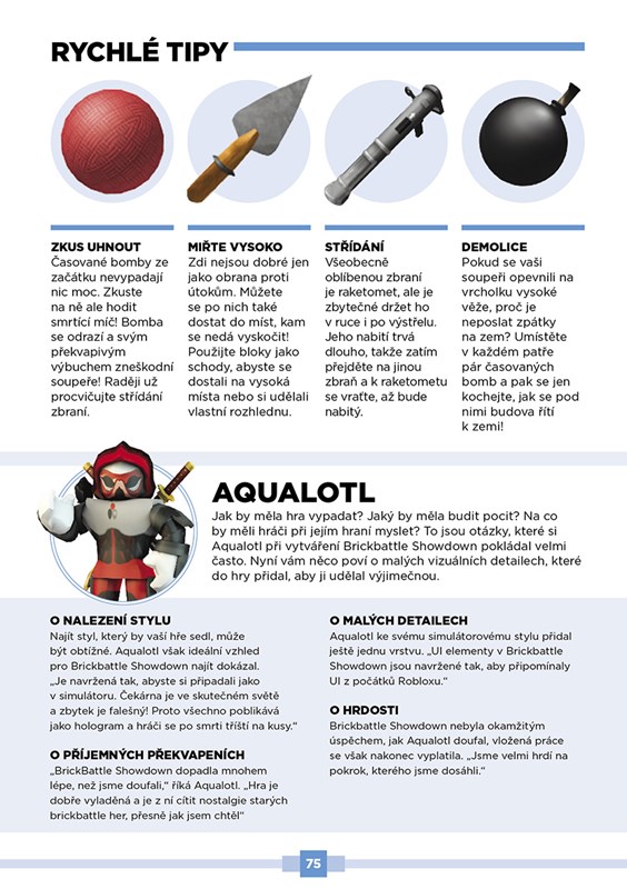 Roblox je plný vzrušujících her, které vás staví proti jiným ctihodným soupeřům. Pokud se vydáte do bitvy, měli byste se řádně připravit. Ať už se vydáte na gigantickou překážkovou dráhu, bojujete s futuristickou vojenskou silou nebo se vyhýbáte při neúprosné vybíjené, oficiální příručka Nejlepší bojové hry vám poskytne výhodu, kterou potřebujete k úspěchu. Je plná užitečných informací a rozhovorů s tvůrci her, což z ní činí nezbytnou knihu pro všechny Robloxiany.