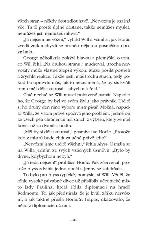 a šípy, saxonský a vrhací nůž, maskovací pláštěnku a houževnatého malého ponyho. Ačkoli Will nemá meč ani velkého koně, po kterých tolik toužil, zjistí, že dobrý hraničář je pro království stejně důležitý jako slavný rytíř.