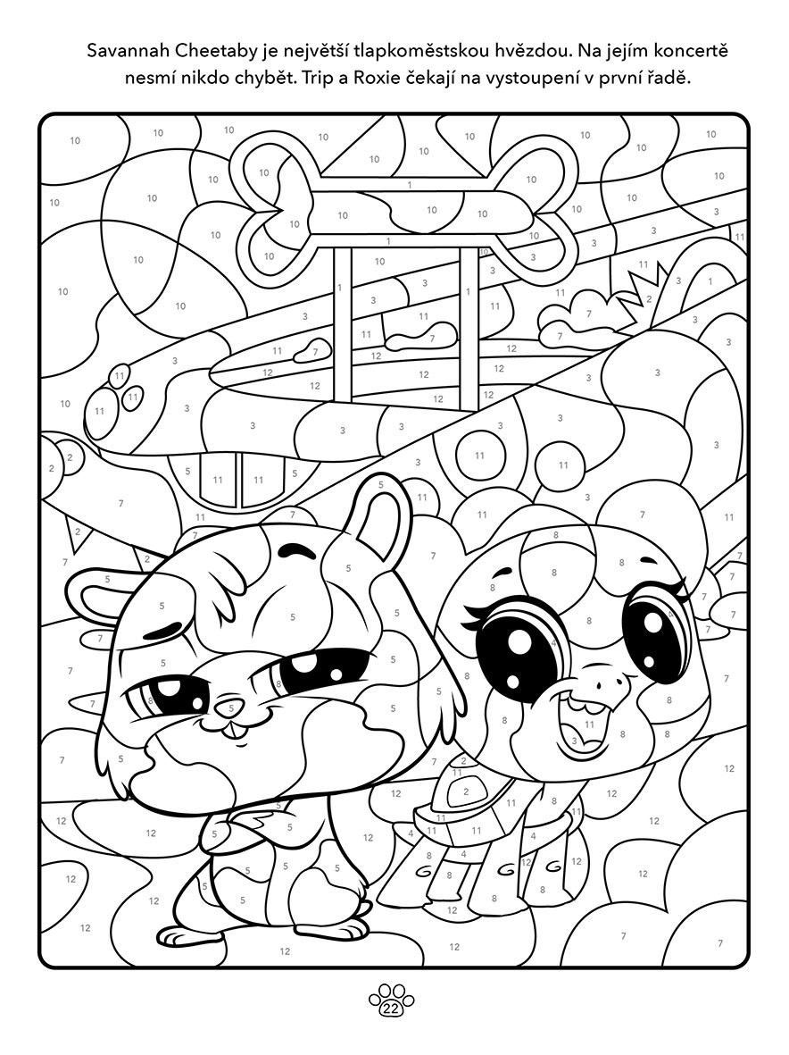 Připravte si oblíbené pastelky, tužky a fixy, otevřete tyto báječné vybarvovánky plné zvířátek a zábava může začít! S výběrem správných barev vám pomůže číselný kód. Vybarvujte a získejte překrásné barevné obrázky svých oblíbených hrdinů z LITTLEST PET SHOP.