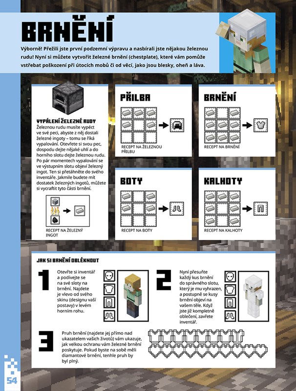 Pusťte se s touto oficiální knihou do úžasného, ale nebezpečného světa Minecraftu! Najdete v ní spoustu tipů a návodů, jak přežít v Klasickém světě. Je toho hodně, co je třeba se naučit, pokud hrajete Minecraft poprvé, ale žádný strach! Pozorně čtěte a nebojte se toho, že uděláte pár chyb. Než se nadějete, budou z vás experti!