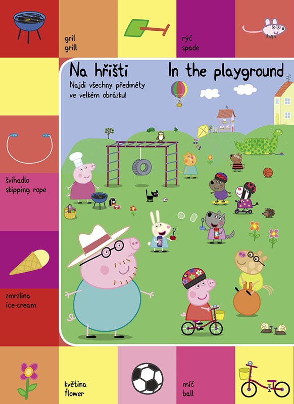 Právě držíte v rukou knihu, s jejíž pomocí si vaše dítě rozšíří slovní zásobu, procvičí si soustředění, zdokonalí komunikaci a posílí schopnost koncentrace. Na stránkách rozdělených tematicky do šesti okruhů z dětem důvěrně známého světa najdete spoustu slovíček, česky a anglicky. Poté, co si je dítě osvojí, může je hledat ve velkých obrázcích.