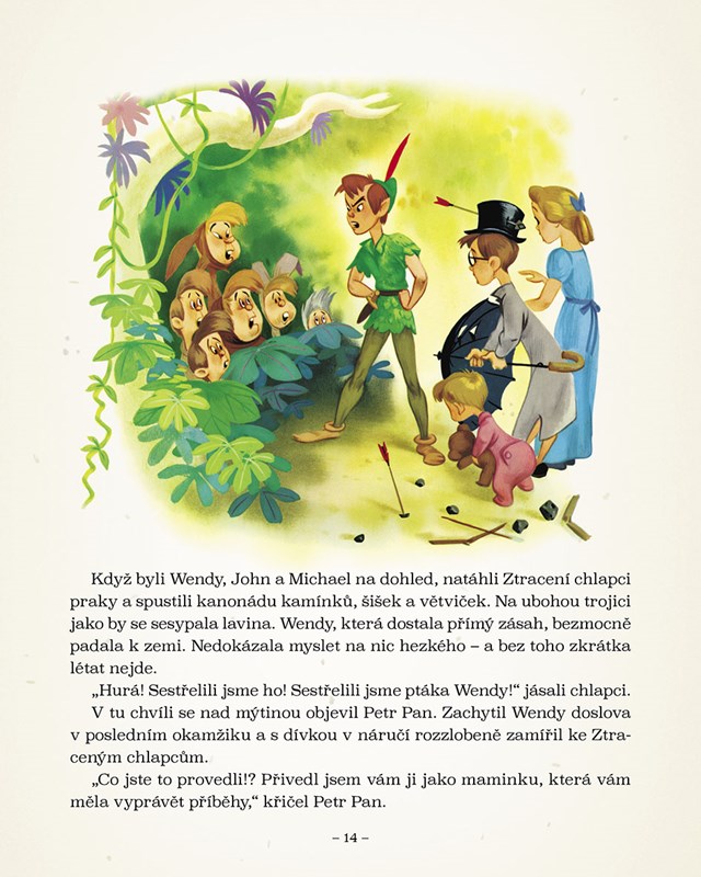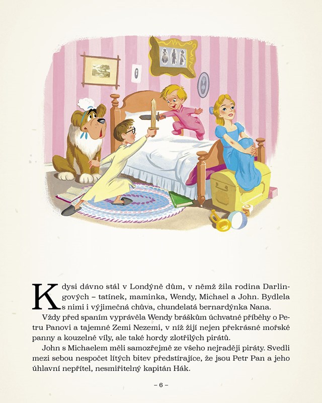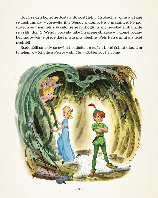 Zaleťte s Petrem Panem a vílou Zvonilkou do kouzelné Země Nezemě! Nezapomenutelný klasický příběh s původními vintage ilustracemi z roku 1952 vás vtáhne do světa plného fantazie a neobyčejných dobrodružství, která baví děti již celá desetiletí.