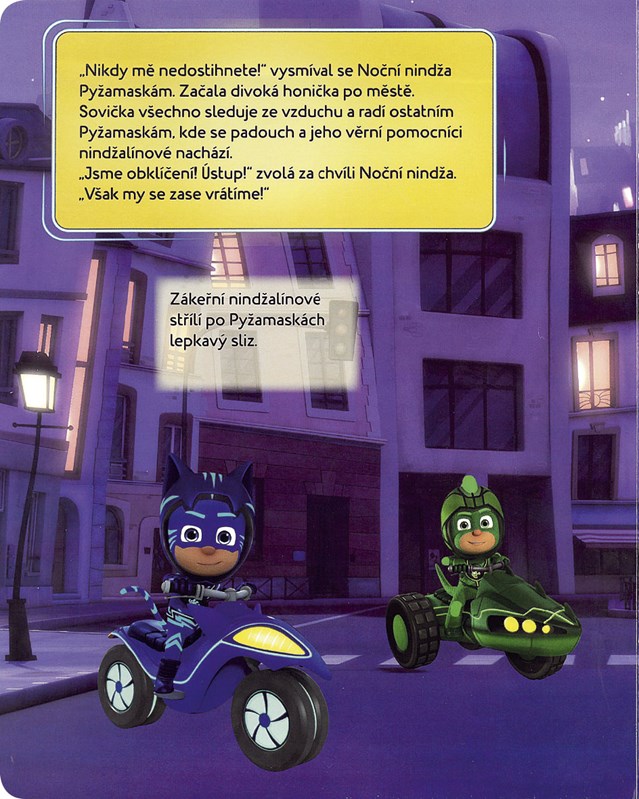 Neohrožené Pyžamasky jsou stále ve střehu, zvlášť když je poblíž zlomyslný Noční nindža a lstivá Měsíčnice. Sovička, Gekko a Kočičák budou muset opět vyrazit do noci, aby se utkali s padouchy a zachránili den!