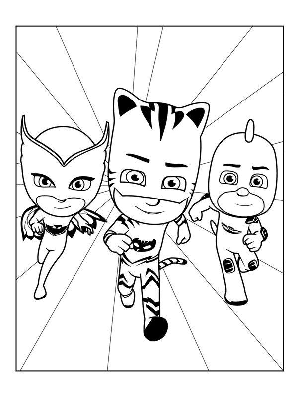 Na nic nečekejte a vydejte se s neohroženými Pyžamaskami za dobrodružstvím. Vezměte si pastelky a vybarvěte udatné malé hrdiny, aby mohli Kočičák, Sovička a Gekko vyrazit do akce. Pyžamasky, odvážně vpřed!