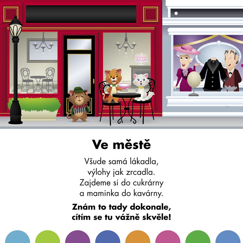 Knížka, již právě držíte v ruce, je určená pro nejmladší čtenáře. Děti ve věku kolem dvou let mají rády hravé říkanky a veršíky, zvláště když jsou doprovázené veselými obrázky a zavedou je na spoustu zajímavých míst, třeba do cirkusu, do parku a na statek, nebo jim ukážou, jak vypadá nocování pod stanem.